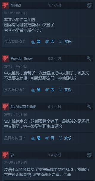 官方直接删除简体中文的做法无论如何都显得粗暴了一些,目前制作组尚未就此事公开表态,后续会不会再加入中文目前并不清楚。