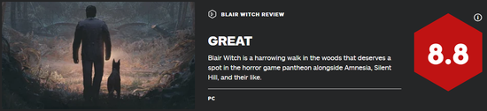 “在树林中蹒跚前进,就像《Amnesia》、《寂静岭》这些作品一样,《布莱尔女巫》值得在恐怖游戏万神殿中占据一席之地。”