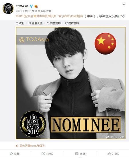 @TCCAsia官博发布消息,《英雄联盟》iG战队的JackeyLove入围2019亚太区最帅100张面孔,一起来了解一下。
