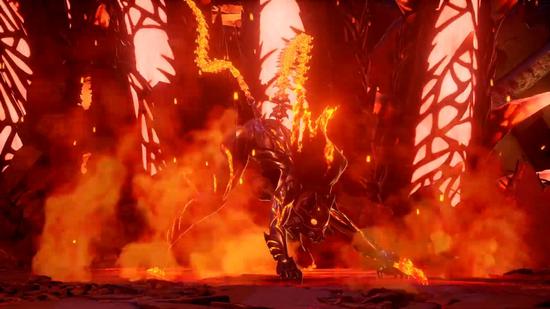 “爪骸の继承者”为一只四足巨兽,外形似猫似人,动作十分迅猛,能够使用刀类武器快速斩击,还能够使用火系技能进行远程攻击,非常强力。