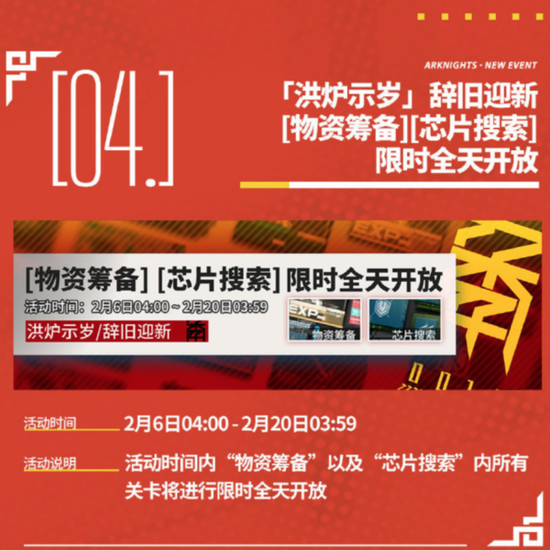 在2月6日-2月20日期间,物资筹备以及芯片关卡全天开放,相信会被玩家刷爆。