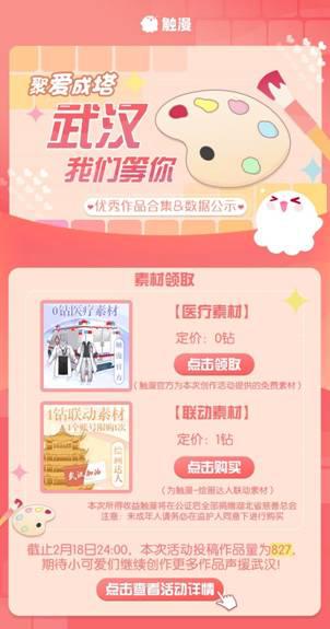 在这场突如其来的疫情面前,触漫用户纷纷响应号召,拿起手中的画笔,创作了一批抗击疫情的主题漫画,为抗击疫情加油。而截止2月18日24:00,本次活动投稿作品量已达到827。