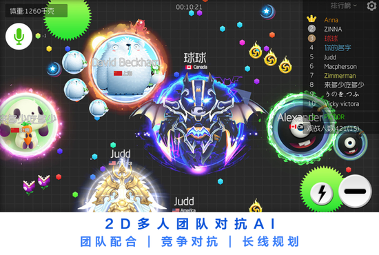在休闲竞技游戏《球球大作战》中,超参数科技与巨人网络联手,通过对团队、敌人、资源、场景等游戏元素实时建模,训练出具备团队配合、竞争对抗、长线规划等能力的AI,可支持技战室、陪练、猎魔模式黑洞军团、自建房陪练等场景需求。