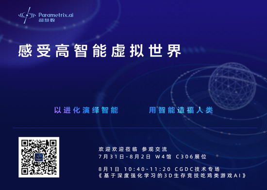 对游戏AI相关技术或应用感兴趣的伙伴,欢迎到W4馆C306展位,与超参数科技进一步交流,一同感受高智能虚拟世界的无限魅力。