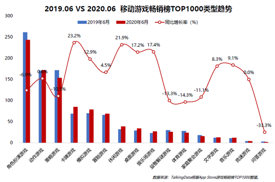 数据显示,卡牌、模拟和休闲游戏在移动游戏畅销榜TOP1000占据的款数比起2019年时均有所增多,其中卡牌游戏虽然在目前的畅销游戏数量上位列榜单第四,但增长率为全品类最高,达到了23.2%;另外,在各类移动游戏月活跃用户规模趋势中,卡牌游戏47.1%的同比增长率,也是所有游戏类型中最高的。