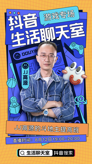 昨晚7点,JJ高源作为抖音生活聊天室最后的“游戏专场”嘉宾出席活动,在线开班并与粉丝欢乐互动,以一堂生动幽默的“斗地主提高班”,为抖音生活聊天室画上了一个圆满的句号。就此,为期一周的抖音生活聊天室活动正式落下帷幕,在短短一周的时间内,先后有《非诚勿扰》节目公认女神卢婧媛、《爱情保卫战》节目主持人赵川、知名体育节目主持人刘建宏等28位大众耳熟能详的知名人士担任生活聊天室主持人,并围绕情感、育儿、体育、汽车、游戏、职场等多个领域与粉丝们进行线上连麦互动。