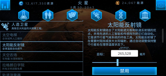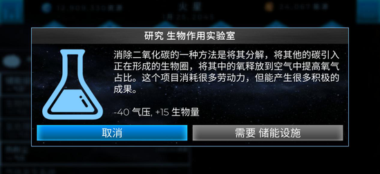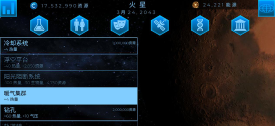 调整气压:小编推荐生物作用实验室和气体矿区。之所以不推荐氢处理器,是因为它会造成热量和海平面上升,对中后期调整十分不方便。但是气体矿区的升压效率极高,一定要注意及时上线关闭。