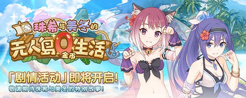 8月30日维护后~9月19日23:59,游戏内将开展新的剧情活动‘珠希与美冬的无人岛0金币生活’——在流传着“实现愿望之岛”的海岸边,珠希与美冬突然被困意袭来。等到醒来的时候已经身处无人岛!?无人岛又将有怎样的挑战等待着她们?