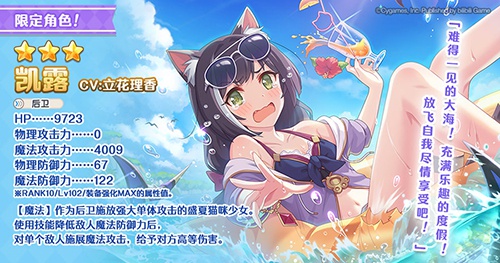 作为后卫施放强大单体攻击的盛夏猫咪少女,凯露(夏日)使用技能降低敌人魔法防御力后,可对单个敌人施展魔法攻击,给予对方高等伤害。