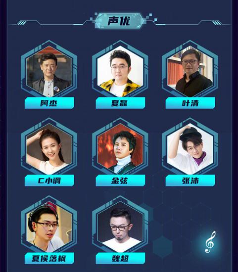 声优嘉宾方面,阿杰(叶修CV)、夏磊(喻文州CV)、叶清(黄少天CV)、C小调(苏沐橙CV)、金弦(周泽楷CV)、张沛(叶秋CV)、夏侯落枫(杜明CV)、魏超(王杰希CV)八位《全职高手》动画主创声优将空降演唱会现场,为粉丝带来最原汁原味的动画片段配音。