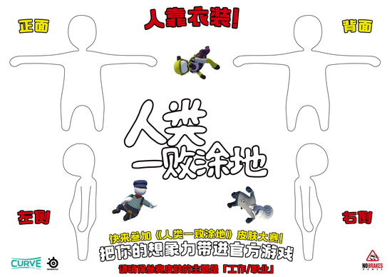 此外,《人类一败涂地》游戏开发商No Brakes Games秉持着“授人以鱼不如授人以渔”的偷懒精神,进一步地将主导游戏创意的权利交给玩家。在黄金周优惠期间,官方将开启首届全球范围内的皮肤创意征集大赛。玩家需要围绕“工作/职业”这一创作主题,为群魔乱舞的庞大UGC皮肤库再度添砖加瓦。