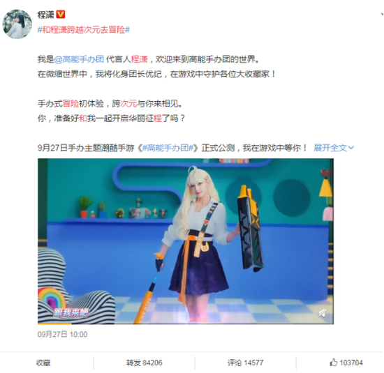 而从公测期的推广来看,《高能手办团》也围绕着手办、潮流元素以及众多年轻人喜欢的内容引发话题讨论与共鸣。邀请人气偶像程潇作为代言人,不仅带来了流量,同时其本身的形象与生活态度都与产品的宣传贴近,活泼、时尚、高能的生活,均让游戏快速出圈。