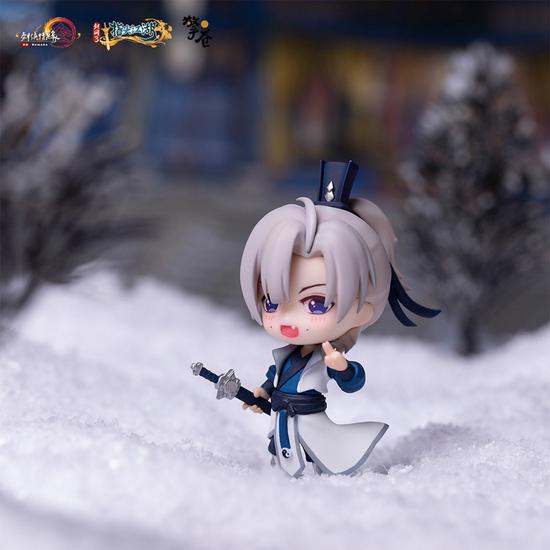 沈剑心左手剑指、踏雪而行,身着素衣、萌动的表情让活泼俊朗的少年侠士形象跃然眼前!人物衣襟飞扬的细节精细刻画,无风而动,仙气自来。