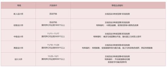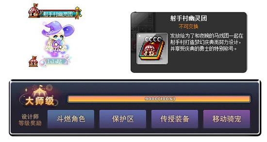 除此之外,当等级达到初级设计师时还可获得斗燃加速器1个;中级设计师将可开放幽灵团马戏舞台地图;高级设计师可开放装备传授功能,将可以把特定装备道具转移到相同世界的其他角色上;而设计大师则可开放移动骑宠技能,将角色学习的骑宠技能转移到同世界其他角色上。