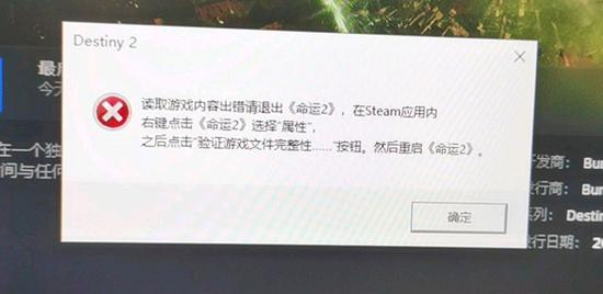 遇到无法读取游戏文件问题时需要先在Steam验证游戏的完整性,下载更新完成之后建议重启游戏进行尝试。并且玩家们需要检查自己的电脑配置是否满足游戏需要的最低配置,《命运2》的最低配置和推荐配置可在Steam进行查看,不满足最低配置的玩家需要针对游戏进行适配。
