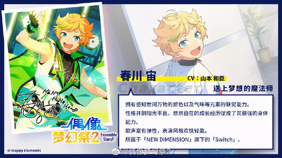 在由乐元素开发的音乐节奏手游《偶像梦幻祭2》中,春川宙作为送上梦想的魔法师,为粉丝们带来了充满幸福的表演。下面就来看看春川宙首次公开的个人档案吧!