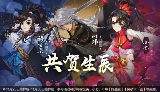 此外,[穆玄英][叶炜][小七]三位侠客生辰礼活动上线,大量福利好礼回赠少侠!,事不迟疑,各位少侠不妨一睹为快!
