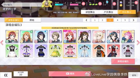 在这里你可以尽情欣赏学园偶像们的舞台表演,发挥你的想象任意对学园偶像们进行组队,从成员到站位都由你决定,举办一场你心目中的演出吧!