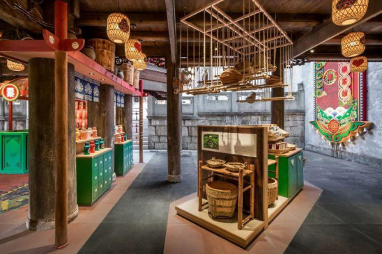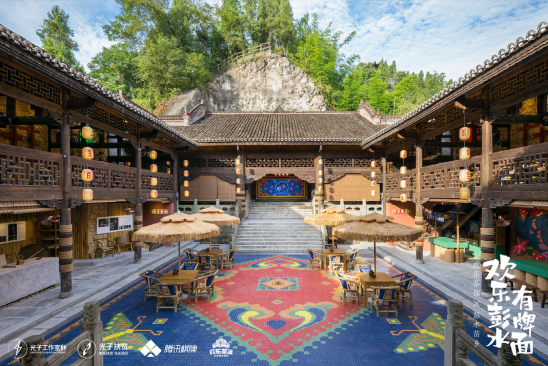 欢乐茶馆这次所落地的彭水蚩尤九黎城,是中国最大的苗族传统建筑群。为还原当地苗乡风光,‘彭水苗乡欢乐茶馆’由九黎城里一座空置的吊脚楼改造而来,其中的飞檐翘角、窗棂花形均延续了苗族传统建筑特色。