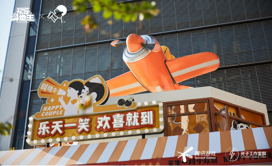 ‘喜茶·欢乐茶馆快闪店’的核心表达是‘天生一对小欢喜’。在这次联动中,‘欢乐茶馆’同样采用了年轻化的视觉表达,并延续了腾讯棋牌场景与元素。