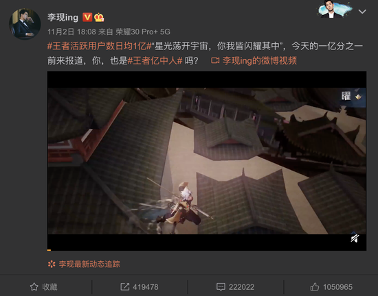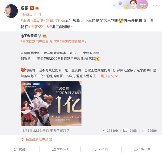 不久前,王者荣耀公布2020年日活跃用户数日均1亿时,杨幂、李现更是转微博、秀战绩地疯狂打call!