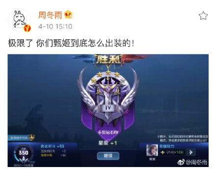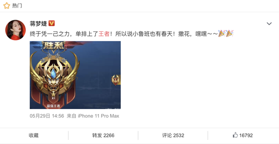 COS过不少王者荣耀热门英雄的当红小花蒋梦婕凭借一己之力打上王者骄傲发博庆祝,刚刚成为三金影后的周冬雨还曾在线“卑微”问甄姬怎么出装……一个个都是认证老召唤师了。