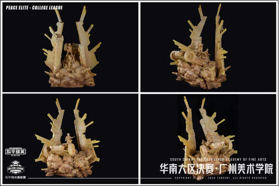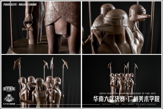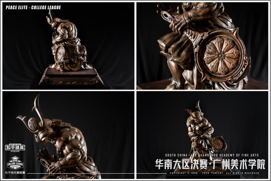 本次《和平精英》高校赛华南大区赛联合广州美术学院雕塑与公共艺术学院,由广州美术学院雕塑与公共艺术学院讲师:郑晓雄(中国雕塑学会会员、广东省青年美术家协会雕塑艺委会副秘书长)、郑敏(中国雕塑学会会员,广州雕塑艺委会委员)共同指导学生,完成产出了七件雕塑系列文创作品。