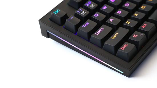 微星GK50Z终结者游戏机械键盘支持马卡龙炫光,键盘侧面的灯带支持RGB流光效果,整体具有19种不同的灯光效果,而且可自定义录制光效,可玩性十足。键盘拥有白色ins风和黑色电竞风两个版本,能够满足不同玩家需求。这款键盘不仅有着出众的颜值,整体的性能也较为出色,对于入门级玩家来说,是个非常不错的选择。