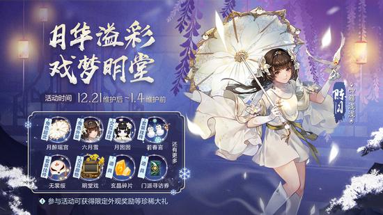 陈月专属超武[月醉瑶宫]、陈月全新外装[六月雪]、陈月全新玩偶[月囡囡]、可交互趣物[明堂戏]。