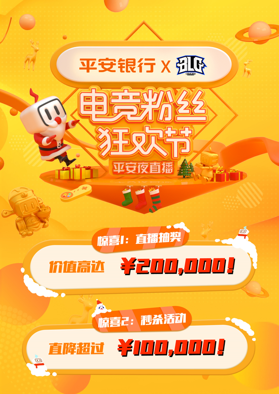 据了解,在电竞粉丝狂欢节平安夜直播上,BLG平安银行电子竞技俱乐部全新阵容将亮相,不仅有人气主播站台,也会现场组织“水友赛”,而作为冠名商的平安银行也将与年轻人“面对面”直接沟通。