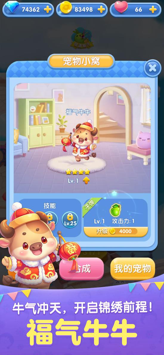 当然,有了新衣服,还要有全新的宠物才行,新版本中,“福气牛牛”也将和大家见面。希望福气牛牛可以为大家带来真正的福气,2021年,每一位萌友都可以牛气冲天!