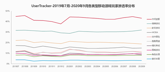 而根据华为应用市场联合艾瑞咨询发布的《2020年中国移动游戏行业发展研究报告》,2019年7月至2020年9月,休闲益智类产品的用户渗透率稳居移动游戏各类型的首位,该报告同时指出,随着超休闲游戏的崛起及小游戏、H5的逐渐成熟,轻度休闲游戏还有较大成长空间。