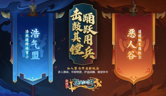 天下势力两分,全新盟战玩法开启。天下势力两分,全新盟战玩法开启!烽烟江湖,候君来至。即日起,少侠前往稻香村完成“江湖云兴诡波”任务后,即可开启昂扬激战的阵营世界。想要一击溃敌就必须知己知彼,少侠们快随三妹一起熟悉下全新玩法[盟战]吧!