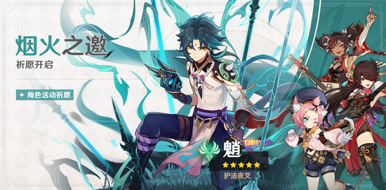 《原神》‘烟火之邀’活动祈愿将于2月3日版本更新后开启,限定五星角色‘护法夜叉· 魈(风)’的祈愿获取概率提升。