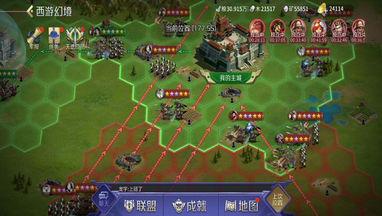 《英雄杀》是采用了相对保守的方式。在2020年更新了周年庆版本,直接在手游版本中添加了“世界模式”。笔者发现,世界模式不仅是为周年庆提供新内容消耗,更是一个选择SLG融合的信号。首先世界观丰富。有西游、楚汉等多个主题架构供玩家选择。而且和传统SLG大地图不一样,主打“短平快”模式。每个主题地图都是几十人规模,开图周期也在半个月左右。相信也是为了符合桌游玩家的游戏节奏与自身产品的适配性创新。