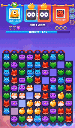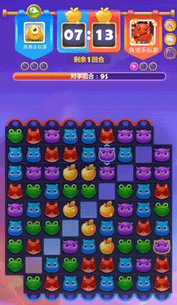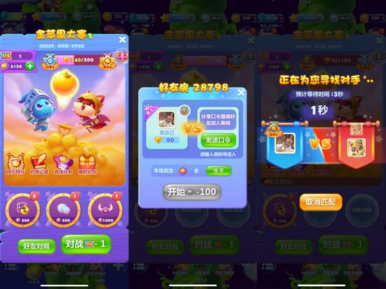 2月1日-3月9日,《开心消消乐》推出新春金苹果大赛,首次上线PVP对战模式,在该玩法中,玩家可以与游戏中的真实玩家随机匹配,还可以创建房间邀请身边的亲朋好友进行现实对战切磋,获胜者取得奖杯提升段位。