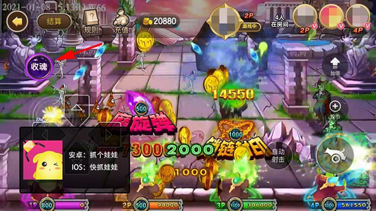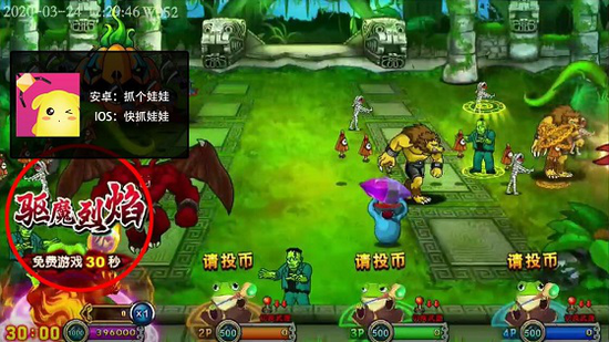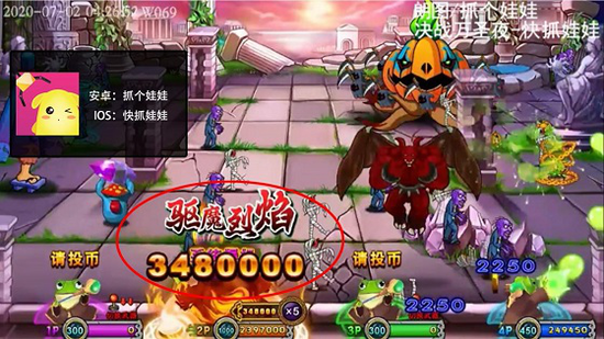 获得基础时间为30秒的免费子弹,捕获大怪和特殊效果的小怪(魔法召唤或锁链封印)可增加时间,打的怪越多分数越多最多能翻十倍。老手应该都熟悉,建议新手可以左右散射,因为驱魔烈焰的伤害不高,打小怪稳赚不亏,有的玩家已经打上了348W的超高分数!