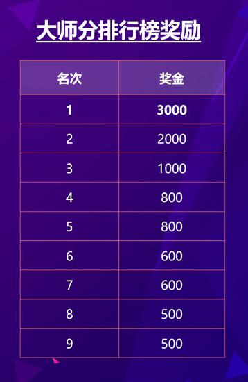 ※玩家所获奖金含20%个人所得税大师榜月度奖励