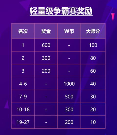 轻量级争霸赛盲注表: