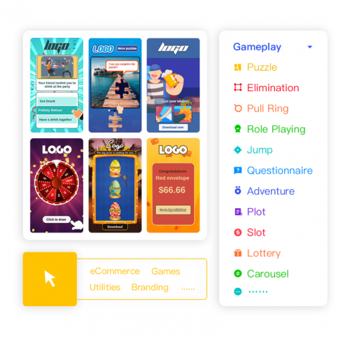 同时,为了打通行业壁垒,让可玩广告更好地实现破圈、深度赋能工具类应用、品牌方、电商等广告主,Playturbo 可玩广告模板工具针对素材交互方式分类,涵盖解谜、拉环、角色扮演、闯关等市面主流交互玩法,满足不同行业及品类的素材需求与应用场景。