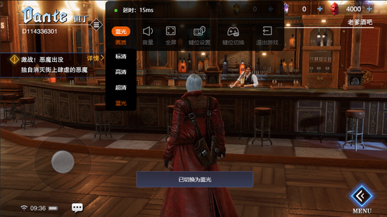 在延迟方面,即使是切换了蓝光模式后,延迟始终保持在15ms以内,属于基本不会影响操作体验的范围。如果在游玩时网络出现了波动,云游戏也会自动切换至对应的画质,优先保证游戏的流畅度,这样的设定对于《鬼泣-巅峰之战》这种对流畅度要求很高的游戏而言,无疑是非常合适的,玩家也不会因一时的网络波动导致通关失败。