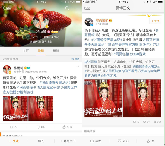 除了游戏品质高之外,胜利游戏凭借在游戏发行领域的优势,为《倚天屠龙记》手游的市场营销制定了高效策略。如斥资邀请华语电影演员张雨绮作为游戏代言人,与知名时尚杂志《时尚芭莎》一起结合产品内容与胜利游戏品牌进行包装等一系列多维度的海量曝光。通过在北上广等一线城市的地铁进行车厢、站台广告投放,分众传媒精选八座一二线城市的楼宇广告投放等手段,微信朋友圈广告精准定位移动游戏与武侠游戏玩家群体,累积了大量的玩家美誉度,提高产品的口碑与胜利游戏品牌影响力。这种大手笔动作也从侧面反映出完美世界与胜利游戏对《倚天屠龙记》手游的信心十足,期待极高。