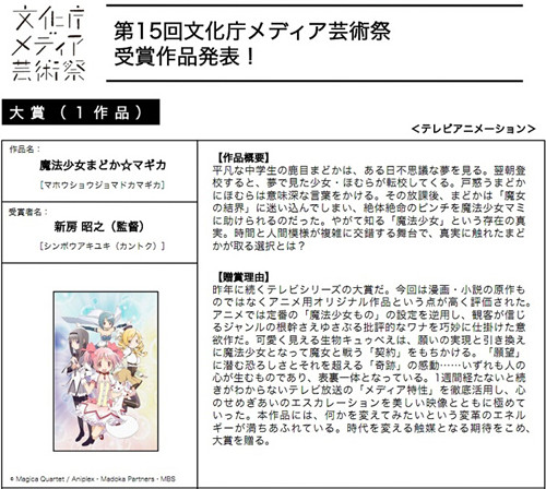 将《魔法少女小圆》归为现象级作品也并非言而过之。本作热播之时,曾在日本ACG领域创下TV动画蓝光光碟销售最佳记录;同时还荣获多个奖项,在日本第15届文化厅媒体艺术节上获得动画门类大奖,同时也是第16届神户动画奖最佳TV动画得主。