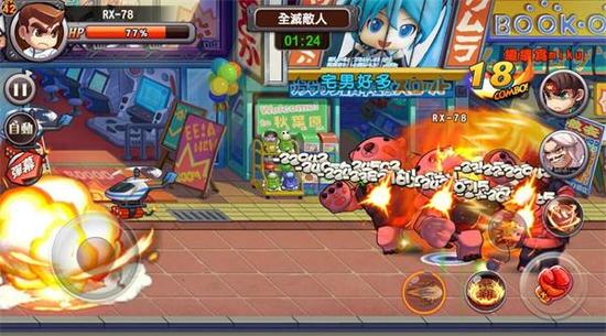 纵然有FC“热血系列”的正版授权,但若完全保留原作内容,将不适应手机端的游戏设计,也不符合当今玩家的游戏体验。在游戏市场整体趋同的情况下,《热血高校》在横版格斗手游上的创新成为其脱颖而出的制胜法宝。《热血高校》手机版本与FC版本一样,为2D横版格斗玩法,以热血、搞笑的高校故事为背景,无论从画面、玩法还是场景布置方面来看都十分贴近原作,却又在各处都加入了新鲜元素,如“丰富互动性道具”“全新伙伴系统”“枪械系统”等,令可玩性更高,青出于蓝。《热血高校》的研发负责人表示,这款游戏的核心玩法总结起来就是爽快的连击动作+深度的关卡策略,特别是在关卡设计上的不同,是其区别于市场上绝大部分横版动作类游戏的关键。