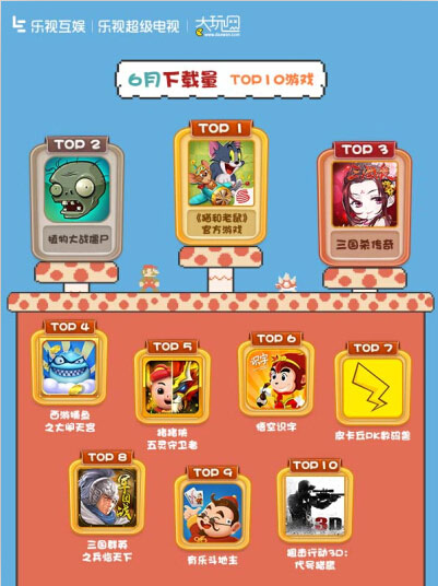 其中,《猫和老鼠》是由华纳兄弟官方授权、网易自主研发的一款正版IP改编游戏,六一儿童节登陆乐视游戏中心后,凭借着动画的超高人气,在首发当天便刷新了乐视平台的各项数据,成绩惊人,并不负众望地夺下6月下载榜冠军头衔。