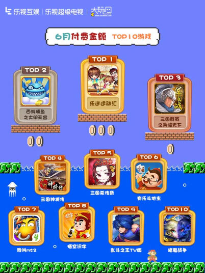 从乐视游戏中心6月付费情况来看,配件与大屏的交互式体验正逐渐成为趋势,《乐迷运动汇》与乐视体感摄像头的完美搭配,让该游戏连续数月保持良好成绩,并于本月成为付费榜NO.1。