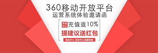 即日起至8月15日,360开启该运营系统体验活动,“充值10%返现”,“提建议送红包”福利让惊喜加倍!