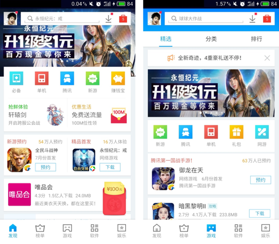 《永恒纪元:戒》获应用宝全平台资源推荐截止到2015年10月,在腾讯应用宝平台中收益超过1亿的手游开发者已达24家,收益超过千万的开发者更达108家。应用宝针对游戏开发者推出升级的闭环服务体系,包含无门槛接入、预约预热、数据测试、打磨调优、正式首发、持续运营六大环节。在第五届全球移动游戏大会(GMGC)上,应用宝游戏负责人于小雨透露在闭环服务体系下,应用宝单日可为手游聚量超15万,预约用户安装率高达80%。