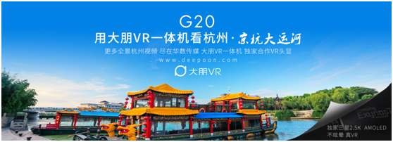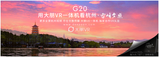 大朋VR是中国虚拟现实产业领军企业,今年率先研发并量产出世界首个VR一体机产品,G20期间,大朋VR一体机作为VR内容展示设备,联合华数传媒将杭州典型景观通过全景视频模式展现给各国来宾,获得多方好评。