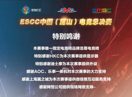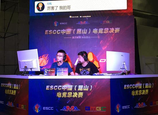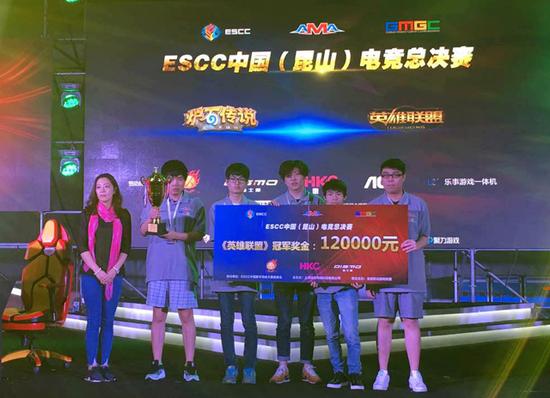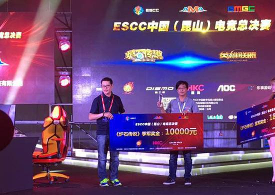 总决赛《英雄联盟》解说OP、KK在《炉石传说》半决赛阶段,湖南选手BHRogue和山西选手ag九妹两位选手分别力压刘沛泽、CLMeiHua,挺进决赛。决赛时,BHRogue开局不利,萨满输给ag九妹的法师。然而从第二局开始,BHRogue开始控制全场,连赢三局拿下比赛,成为本届ESCC中国(昆山)电竞总决赛《炉石传说》冠军。ag九妹、刘沛泽、CLMeiHua分别获得亚军、季军、殿军的好成绩。